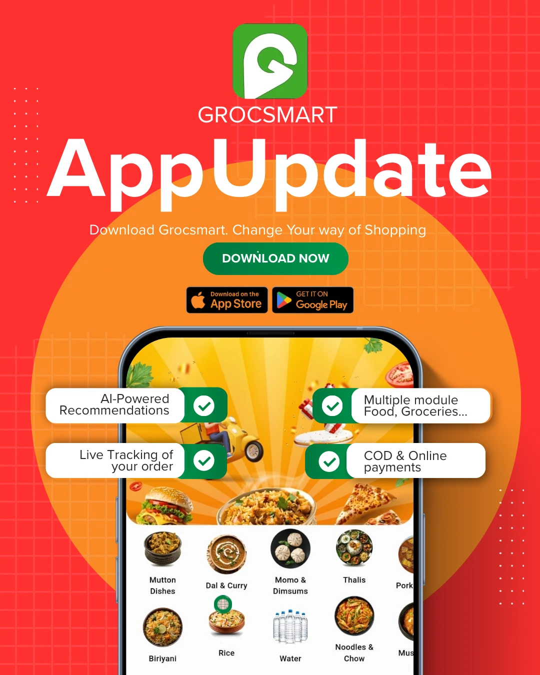 Dear Users kindly Update your Grocsmart App from App Store & Play Store, New version available with exciting features 🙏 X